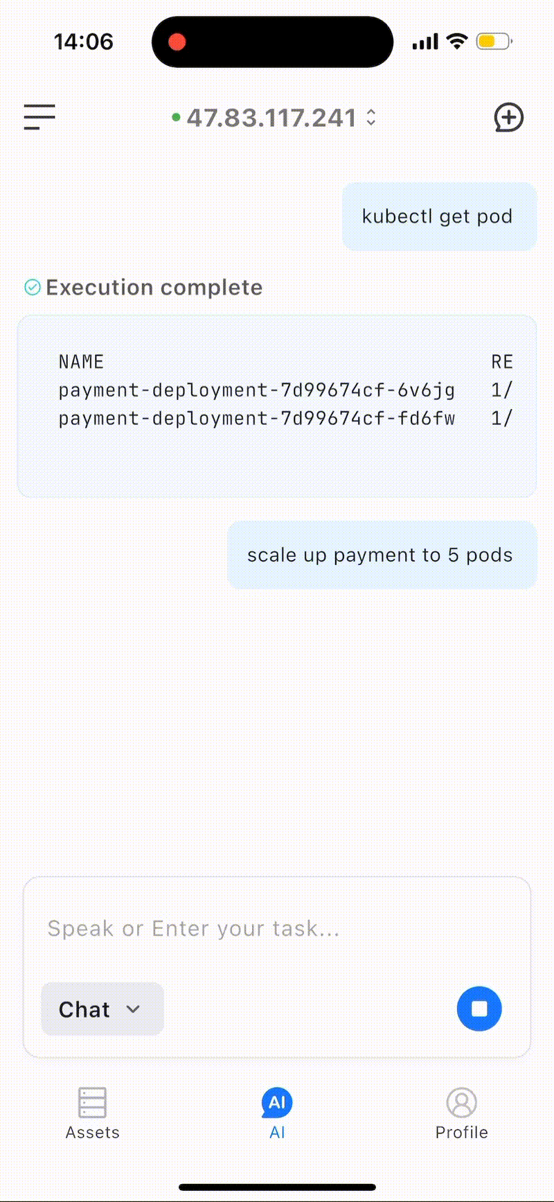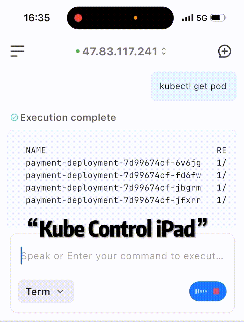The first issue to address is that engineers frequently need to execute various commands and parameters quickly via voice on mobile devices, such as kubectl. On mobile devices, this process faces a significant user experience problem: typing complex Kubernetes commands on a mobile phone's virtual keyboard is extremely painful and inefficient.