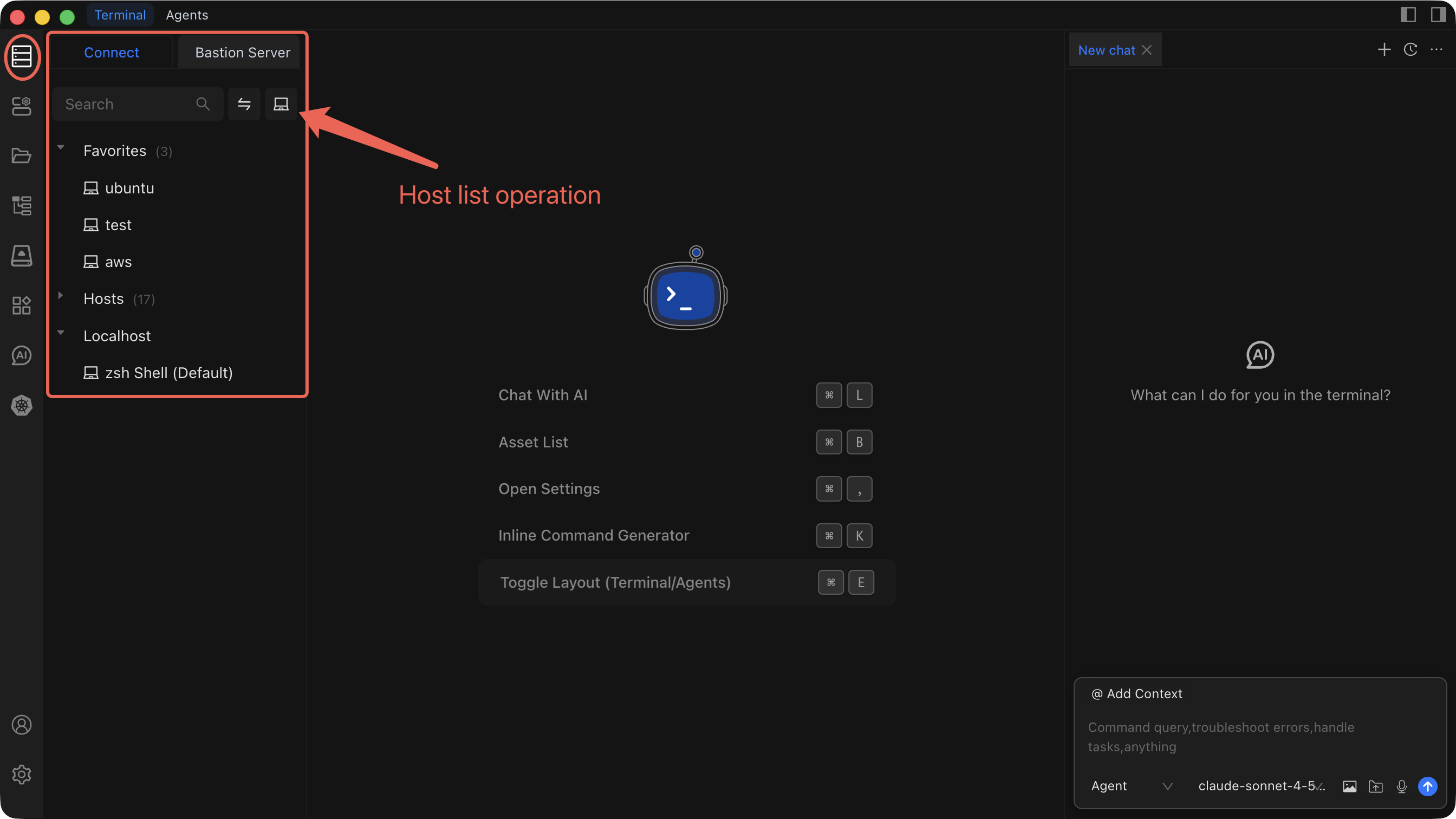 The host list is your central dashboard for browsing, searching, and managing every server you have added to Chaterm, so you can connect to any host in seconds.