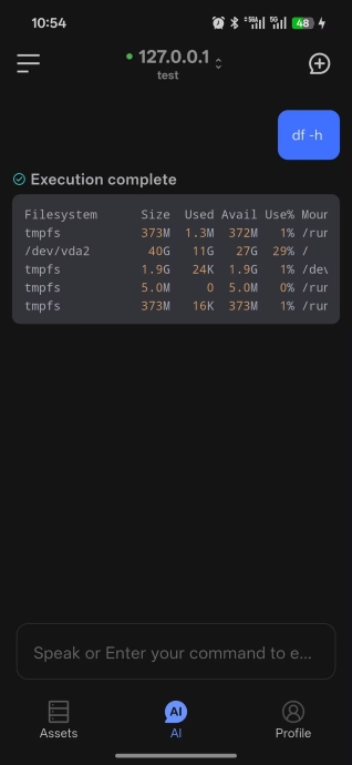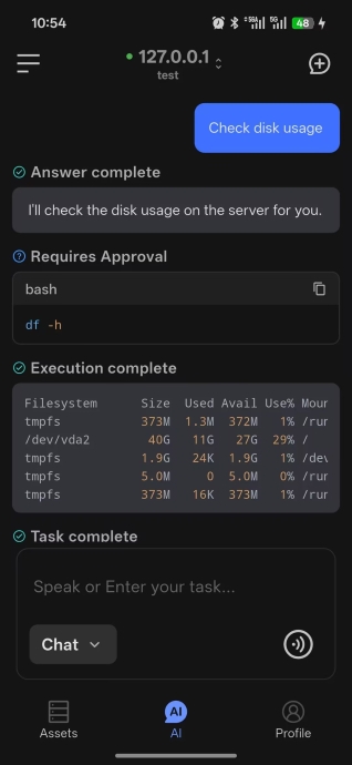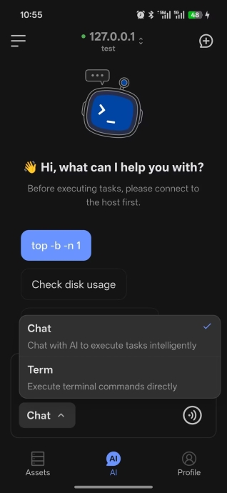 AI Dialog on mobile helps you execute commands, troubleshoot issues, and ask day-to-day operations questions from your phone.